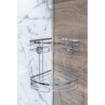 Rohová drôtená chromovaná polička s umiestnením do každého rohu kúpeľne alebo kuchyne. Chromovaná úprava dodáva poličke moderný a elegantný vzhľad. Poskytuje úložný priestor pre kozmetické produkty a iné kúpeľňové pomôcky. Montáž poličky je rýchla a jednoduchá.
