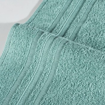 Praktická sada bavlnenej osušky a uterákov v mentolovej farbe s jednoduchým vzorom vnesie kúsok elegancie do každej kúpelne. Vyznačujú sa výbornou savosťou, rýchlym schnutím, farebnou stálosťou aj po viacnásobnom praní a jemnosťou. Balenie obsahuje 1x malý uterák 33x33 cm, 1x uterák 50x100 cm a 1x osušku 70x140 cm.
