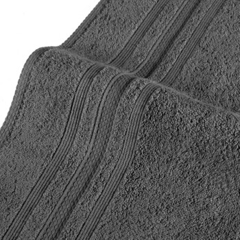 Praktická sada bavlnenej osušky a uterákov v tmavo sivej farbe s jednoduchým vzorom vnesie kúsok elegancie do každej kúpelne. Vyznačujú sa výbornou savosťou, rýchlym schnutím, farebnou stálosťou aj po viacnásobnom praní a jemnosťou. Balenie obsahuje 1x uterák 50x100 cm a 1x osušku 70x140 cm.