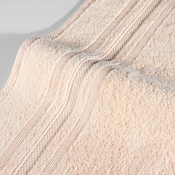 Praktická sada bavlnenej osušky a uterákov v béžovej farbe s jednoduchým vzorom vnesie kúsok elegancie do každej kúpelne. Vyznačujú sa výbornou savosťou, rýchlym schnutím, farebnou stálosťou aj po viacnásobnom praní a jemnosťou. Balenie obsahuje 1x uterák 50x100 cm a 1x osušku 70x140 cm.