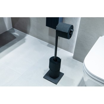 Praktický stojan na toaletný papier s možnošťou uloženia ďalších roliek toaletného papiera. Stojan je vyrobený z lakovanej ocele s matným čiernym povrchom a hodí sa do každej kúpeľne a wc.