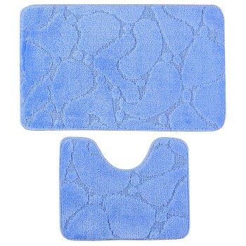 Súprava dvoch modrých koberčekov do kúpeľne a k toalete. Spodná časť je z protišmykového materiálu, čo zaručí, že sa nebudú na dlážke posúvať. V prípade pádu na zem tlmia náraz, čo oceníte najmä pri malých deťoch. Rozmery predložiek sú 50x80 a 40x50 cm.