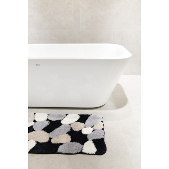 Kúpeľňový koberec v sivo-čiernej farbe s nadčasovým vzorom je vyrobený zo 100% mikrovlákna. Na dotyk je príjemný, hebký, hrejivý a zvyšuje tepelnú izoláciu. Má rozmer 50x80 centimetrov a dá sa prať v práčke pri 30°