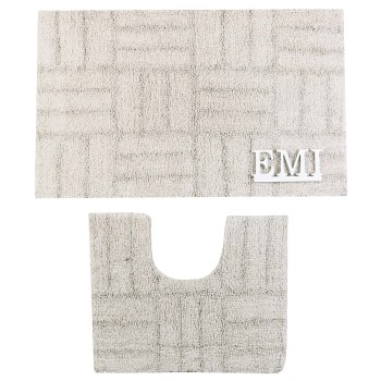 Set kúpeľňových kobercov je vyrobený zo 100% bavlny. Predložky sa vyznačujú vlastnosťami ako jemnosť, hrejivosť, odolnosť a schopnosť tlmiť nárazy. Rozmery predložiek sú 50x80 a 50x40 centimetrov.