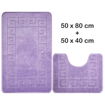 Dvojdielny set kúpeľňových predložiek vo fialovej farbe s rozmermi 50x80 a 40x50 cm. Predložky sú hebké na dotyk, hrejivé, protišmykové a odolné. Zároveň sú praktické a vďaka jemnému vzoru sa hodia do každej domácnosti.