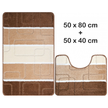 Dvojdielny set kúpeľňových koberčekov Atria spestrí podlahu každej kúpeľne a WC. Predložky sú protišmykové, hrejivé a príjemné na dotyk. Podložky sú v hnedej farbe a majú rozmery 50x80 a 40x50 cm.