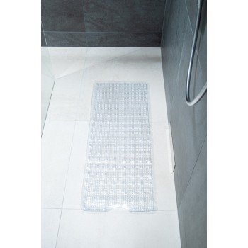 Protišmyková podložka je priehľadná praktická pomôcka do kúpeľne. Poskytuje bezpečnosť a pohodlie počas kúpania. Vyrobená je z kvalitného PVC materiálu a môže sa prať. Na spodnej strane sú prísavky, vďaka ktorým podložka ostane na svojom mieste.
