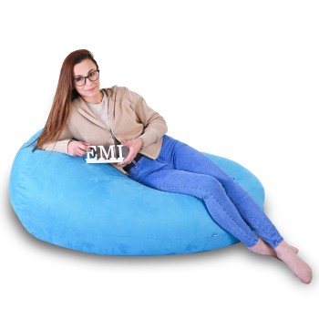 Sedací vak hruška semišová modrá je pohodlný sedací vak do každej obývačky, spálne, detskej izby či kancelárie. Ušitý je z jemného semišu, príjemného na dotyk. Naplnený je polystyrénovými guličkami, ktoré sa prispôsobia postave a a poskytnú jej pohodlné a zdravé sedenie. Objem vaku je 335 l.