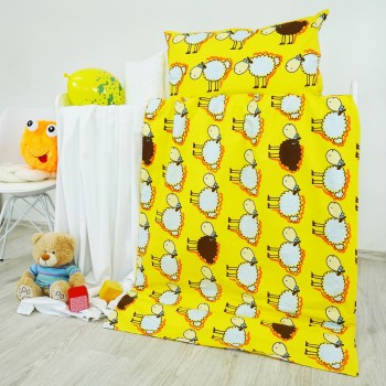 Detské posteľné obliečky ovečky žlté sú vyrobené zo 100 % bavlny deluxe a sú šité na Slovensku. Obliečky sú jemné na dotyk a zároveň pevné a trváce.