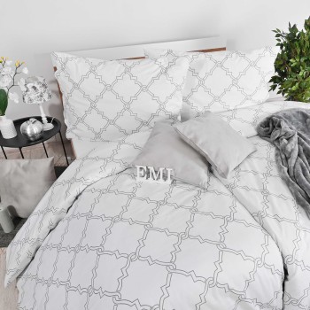 Posteľné obliečky vyrobené zo 100% bavlny sú obľúbené vďaka svojej trvácnosti, pevnosti a jemnosti. Výnimočné sú svojou jemnou striebornou potlačou, ktorá dodá nádych luxusu každej spálni. Hebký materiál je jemný aj k citlivej pokožke. Pod vzdušnou bavlnou sa vám istotne bude príjemne zaspávať.