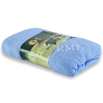 Posteľná plachta modrej farby z froté materiálu je vhodná do akéhokoľvek interiéru, či bežnej domácnosti alebo hotelovej izby. Plachta je slovenský výrobok. Gramáž plachty je 140 g/m2.