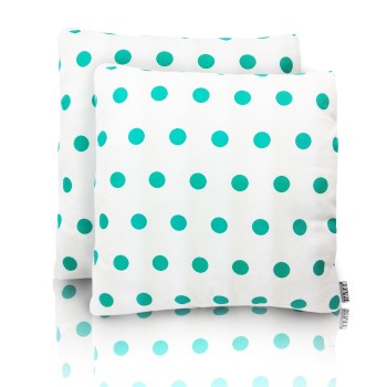 Dekoratívny vankúš v rozmere 40x40cm rozpestrý svojím tyrkysovým vzorom bodiek každý moderný obývačkový priestor, či doplnkový nábytok.