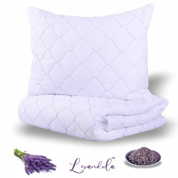 Špeciálny set prikrývky a vankúša Levanduľa je skvelou voľbou pre kvalitný a zdravý spánok. Levanduľa pomáha pri nespavosti, strese, nervozite a bolestiach hlavy. Vďaka antialergickým materiálom použitým na výrobu paplóna a vankúša si komfortný spánok užijú aj alergici a astmatici. Jemný a na dotyk príjemný materiál nedráždi citlivú pokožku.