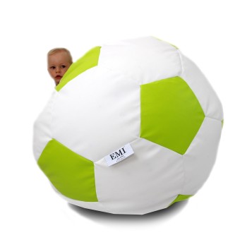 Sedací vak futbalová lopta malá bielolimetková sa hodí do každej detskej izby či herne. Je v sviežej bielolimetkovej farbe. Vak má objem 95 l a jeho polystyrénová náplň priespieva k pohodlnému a zdravému sedeniu. Povrch vaku je vyrobený z ekokože, ktorá je sa ľahko čistí a je šetrná k životnému prostrediu.