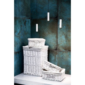 Kôš na špinavé prádlo Arnon v bielej farbe bude dokonale ladiť s vašim kúpeľňovým nábytkom. Príjemný vŕbový vzor v spojení s látkou dodáva košu nadčasový vzhľad.