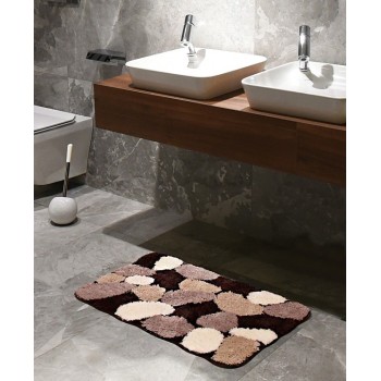 Kúpeľňový koberec v hnedej farbe s nadčasovým vzorom je vyrobený zo 100% mikrovlákna. Na dotyk je príjemný, hebký, hrejivý a zvyšuje tepelnú izoláciu. Má rozmer 50x80 centimetrov a dá sa prať v práčke pri 30°