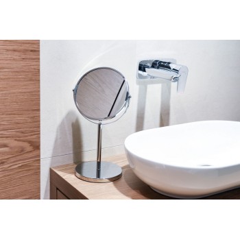 Kozmetické zrkadlo s možnosťou natáčania do strán. Povrch je chrómovaný. Držiak je určený pre montáž na stenu.