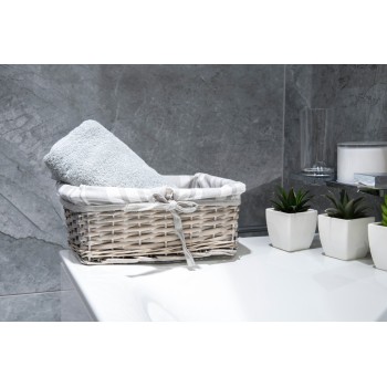 Prútený košík v sivej farbe skvelo poslúži na uskladnenie, uterákov či kozmetických produktov, ktoré potrebujete mať po ruke. Vďaka svojmu dizajnu a štýlovému vzhľadu môže byť aj dekoračným prvkom v kúpeľnovom interiéri. Košík je menších rozmerov 35 cm x 15 cm x 25 cm a nezaberá veľa priestoru.
