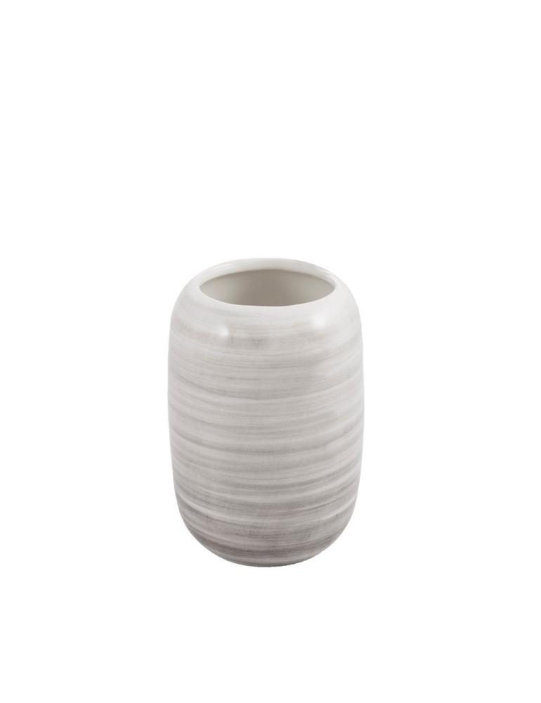 Pohár Jang v bielo-sivej farbe vyrobený z keramiky je vhodný na každodenné použitie v kúpeľni. Je ideálny na uskladnenie zubných kefiek, zubnej pasty, ale aj iných hygienických potrieb.