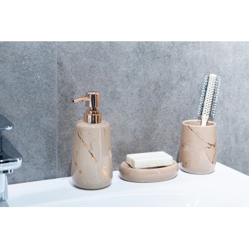 Dávkovač tekutého mydla Diosa v béžovej farbe dodá vašej kúpeľni luxusný vzhľad. Zaujme vás originálnym vzorom keramiky a zlatými prvkami.