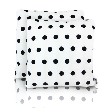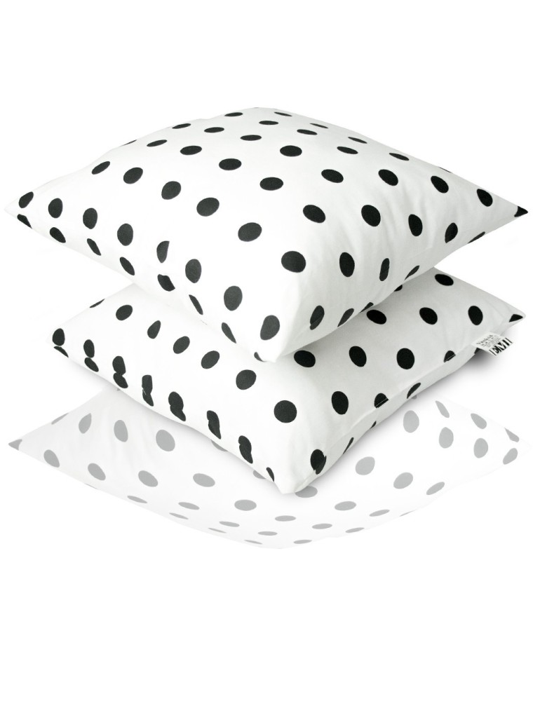 Dekoratívny vankúš v rozmere 40x40cm s čierným vzorom bodiek k elegantnej sedačke či doplnkovému nábytku vo vašej obývačke.