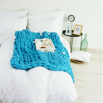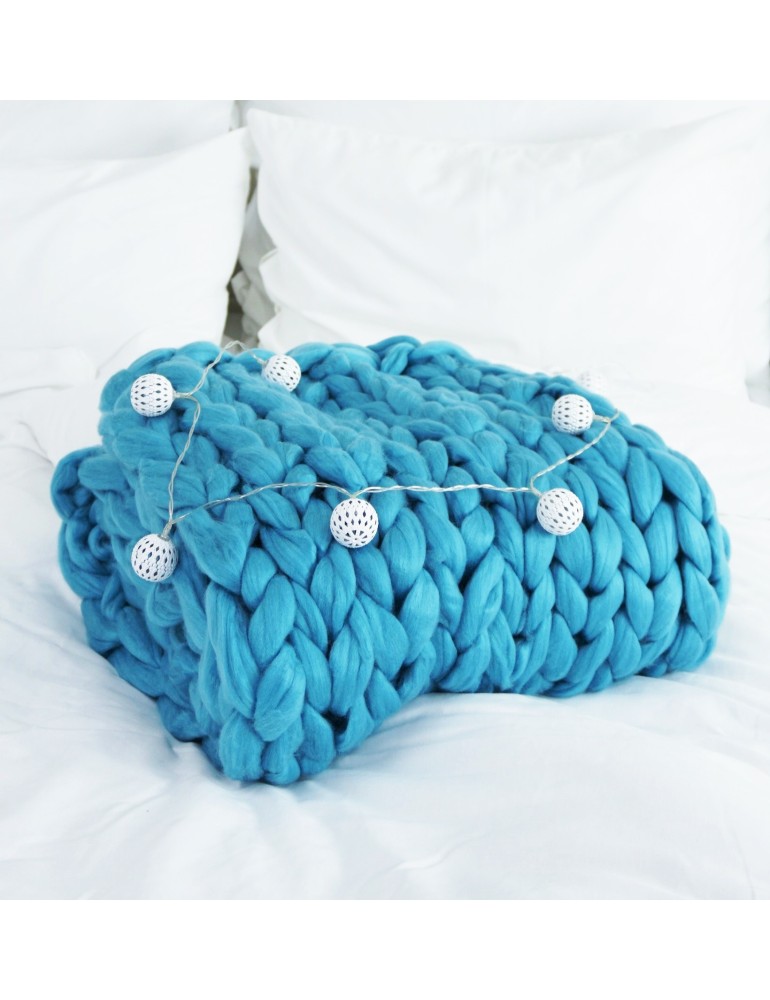 Pletená deka modrá je ideálna do každej obývačky a spálne. Vyčarujte zo svojho domova útulné a moderné miesto pre chvíle s rodinou a priateľmi.