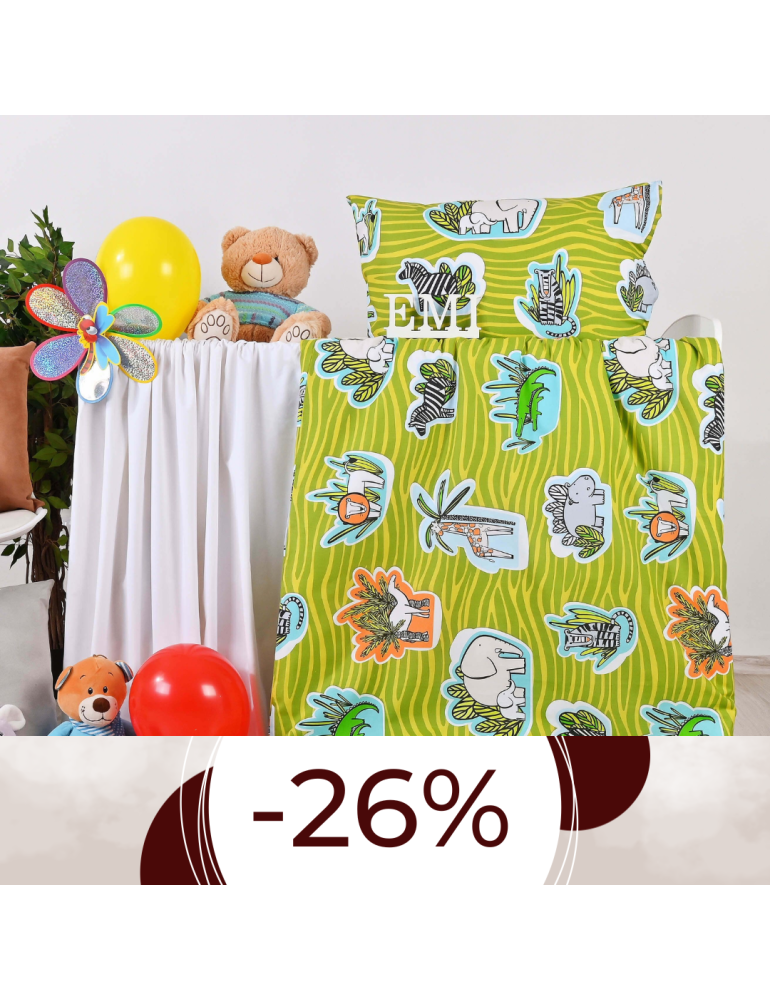 Detské obliečky Jungle sú vyrobené z kvalitnej 100% bavlny delux. Sú príjemné na dotyk, majú veselý vzor a sýte farby si zachovajú veľmi dlho. Zapínajú sa pomocou gombíkov.