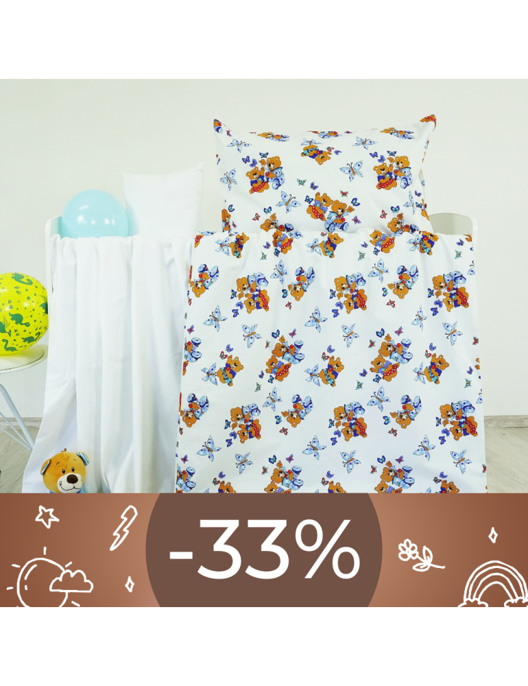 Detské posteľné obliečky macko biele sú vyrobené z veľmi kvalitnej 100 % bavlny de luxe. Sú príjemné na dotyk, pevné, trváce a navyše vhodne aj pre tých najmenších. Obliečky majú praktické zapínanie pomocou umelohmotných gombíkov a sú vyrobené na Slovensku.