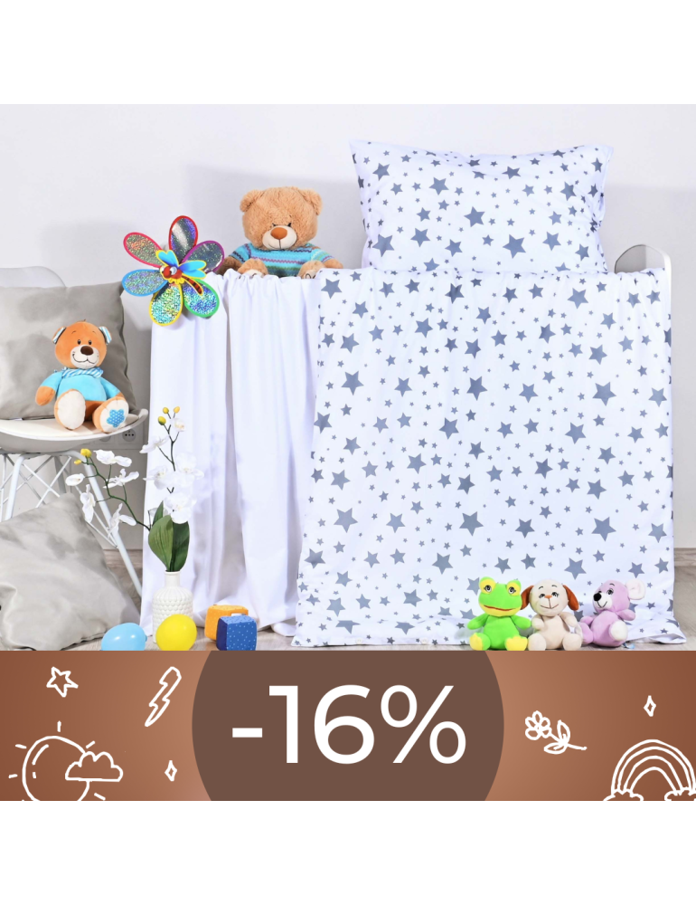 Detské obliečky Sky biele sú vyrobené z kvalitnej 100% bavlny deluxe. Táto bavlna je jemná, zdravotne nezávadná a zachová si svoje vlastnosti naozaj dlho. Obliečky sa zapínajú jednoducho pomocou gombíkov.
