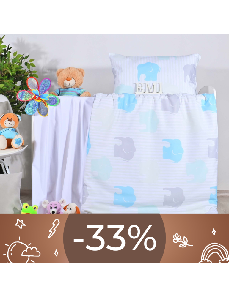 Kompletná výbava detskej postieľky na jednom mieste. Matrac, nepremokavá plachta, jersey plachta, paplónik s vankúšikom a bavlnené obliečky. Zhotovené z materiálov ideálnych aj pre citlivú pokožku bábätka.