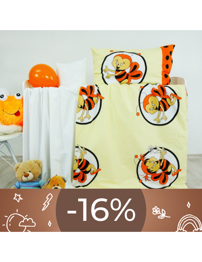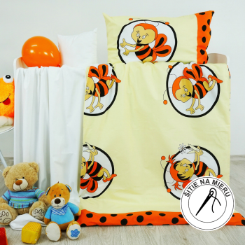 Detské obliečky včielky oranžové sú vyrobené z kvalitnej husto tkanej 100 % bavlny, ktorá pôsobí na detskú pokožku veľmi príjemne. Vás zas poteší pevnosť materiálu, odolnosť a trvácnosť farieb. Obliečky s krásnym rozprávkovým motívom sú vyrobené na Slovensku.