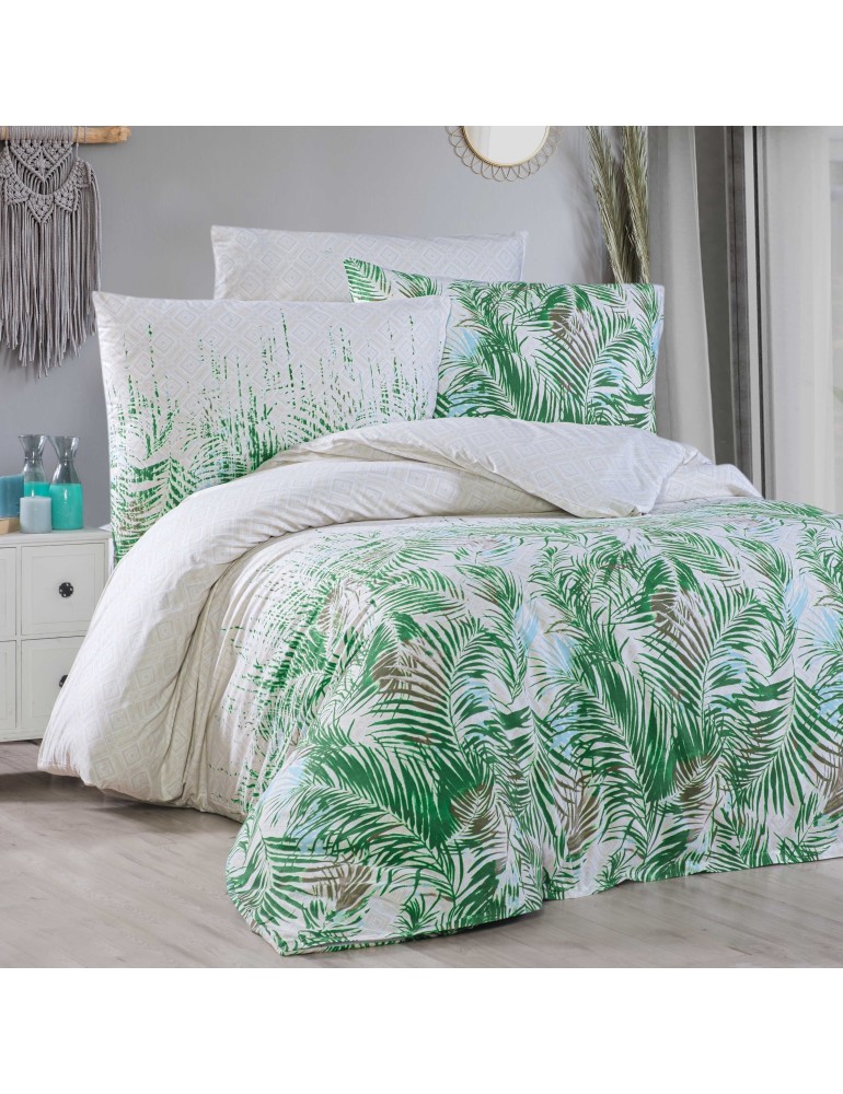 Zeleno-bielo posteľné obliečky s moderným a trendy vzorom vyrobené z husto tkanej bavlny delux. Sú príjemné na dotyk, farebne stále a neobsahujú polyester. Obliečky majú praktické zapínanie pomocou zipsu.