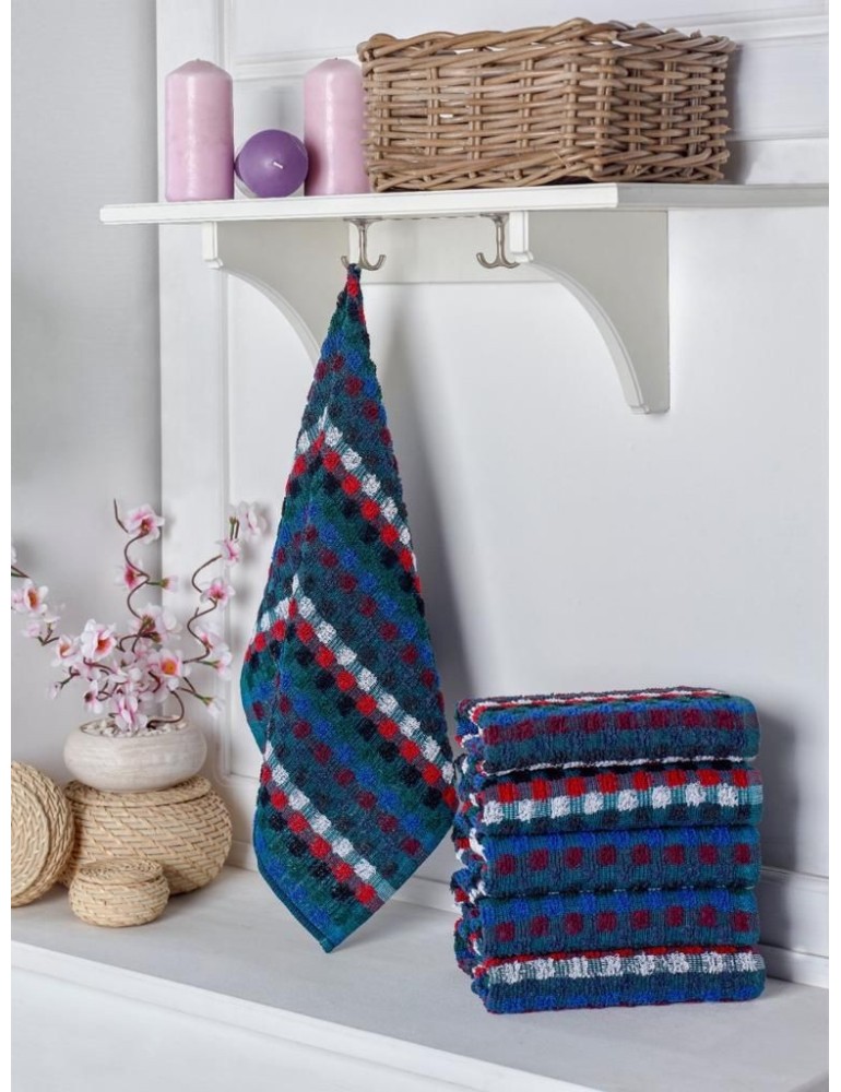 Sada farebných uterákov je vyrobená zo 100 % bavlny. Uteráky sú príjemné na dotyk, rýchlo schnú, nevytvárajú žmolky a dobre sajú. Sú vhodné aj pre všetkých alergikov, ľudí s citlivou pokožkou a deti.