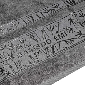 Sivý uterák vyrobený z bambusového vlákna v pomere 70% a bavlneného vlákna 30%. Je vysoko savý, antibakteriálny, trvácny a príjemný na dotyk.