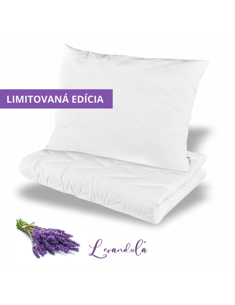 Exkluzívny levanduľový set Harmony EMI pomáha pri nespavosti, nervozite, strese, bolestiach hlavy aj ochoreniach dýchacích ciest. Vankúš s rozmermi 70x90 cm obsahuje sušenú levanduľu, ktorá blahodarne pôsobí na organizmus a zlepšuje kvalitu spánku. Letná prikrývka 140x200 cm je vďaka silikonizovanému dutému vláknu antialergická, antibakteriálna a ideálna na leto.
