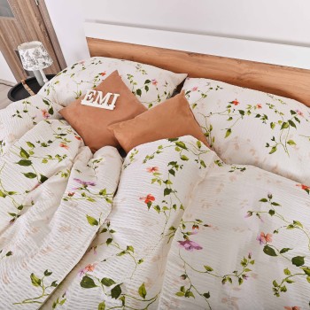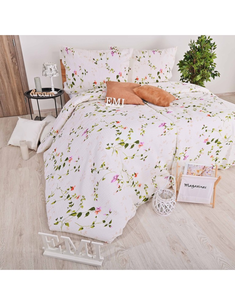 Krepové obliečky Ester s krásnym kvetinovým vzorom sú vyrobené z nakrepovanej 100% bavlny delux. Krepové obliečky sú čoraz populárnejšie vďaka svojim špecifickým vlastnostiam, ktoré ponúkajú. Ich výhodou je hlavne nežehlivý materiál s krepovým efektom, vďaka čomu sú obliečky ešte trvácnejšie. Sú vyrobené na Slovensku.