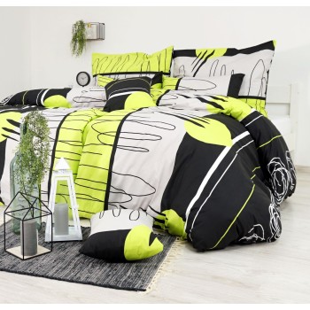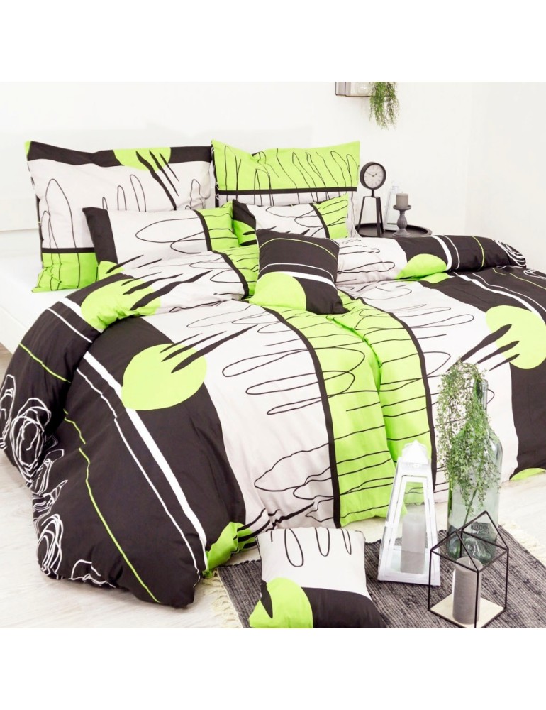 Posteľné obliečky sú vyrobené z kvalitnej 100 % bavlny delux, vzor obliečok tvoria kocky žltej a zelenej farby. Obliečky sú vyrobené na Slovensku.
