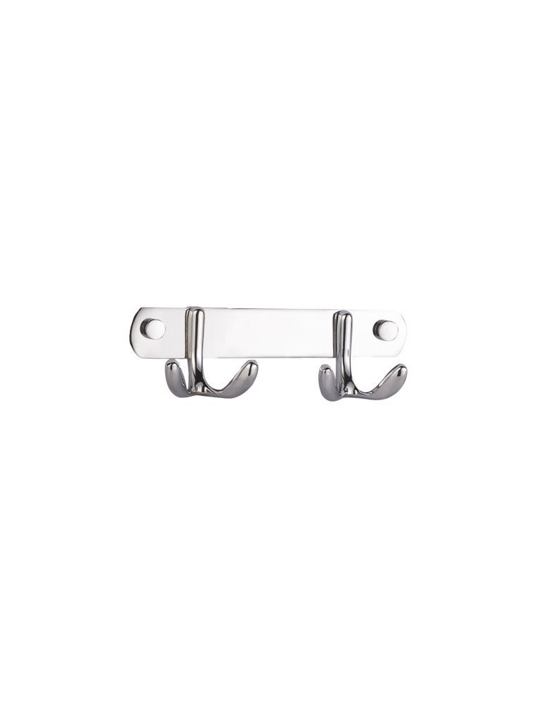 Malý nástenný vešiak do chodby alebo do kúpeľne s jedným párom háčikov, poskytuje dve miesta na zavesenie oblečenia. Vešiak je vo svetlom lesklom prevedení.