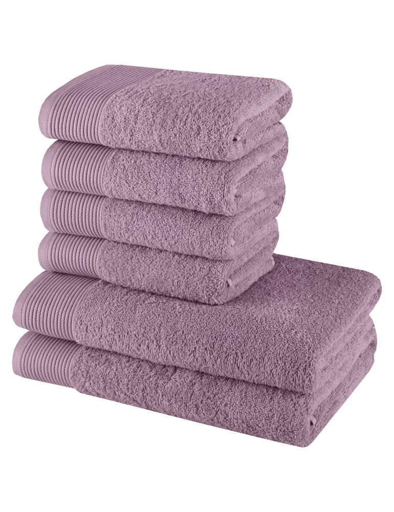 Ružové osušky a uteráky sú vyrobené z jemnej 100% bavlny bez prídavných vlákien. Na dotyk sú hebké, majú dobrú pevnosť v ťahu a vysokú hrejivosť. Set obsahuje 4x uterák 50 x 90 cm, 2x osušku 70x140 cm.