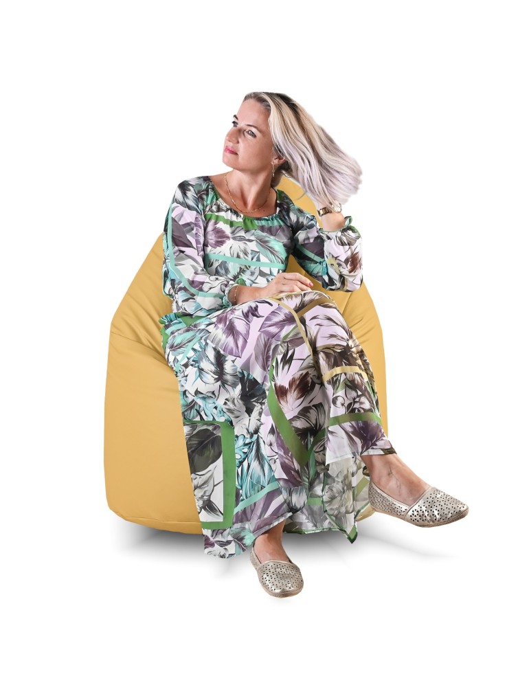 Sedací vak hruška žltá je moderným a zdravým doplnkom do každej domácnosti. Je elegantný a pohodlný. Ekokoža, z ktorej je vak ušitý sa ľahko čistí a navyše šetrí životné prostredie. Objem vaku je 335 l.