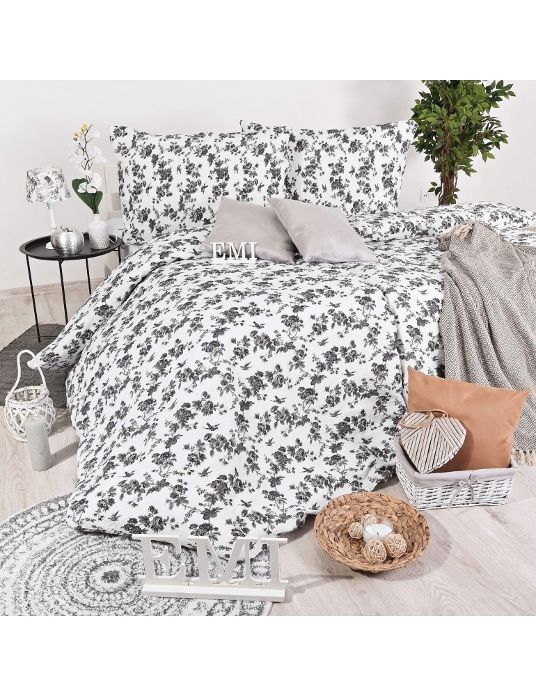 Čiernobiele posteľné obliečky sú vyrobené z nakrepovanej bavlny. Kvetinový vzor krásne ozdobí každú spálňu. Obliečky sú jemné, trvácne a priedušné.