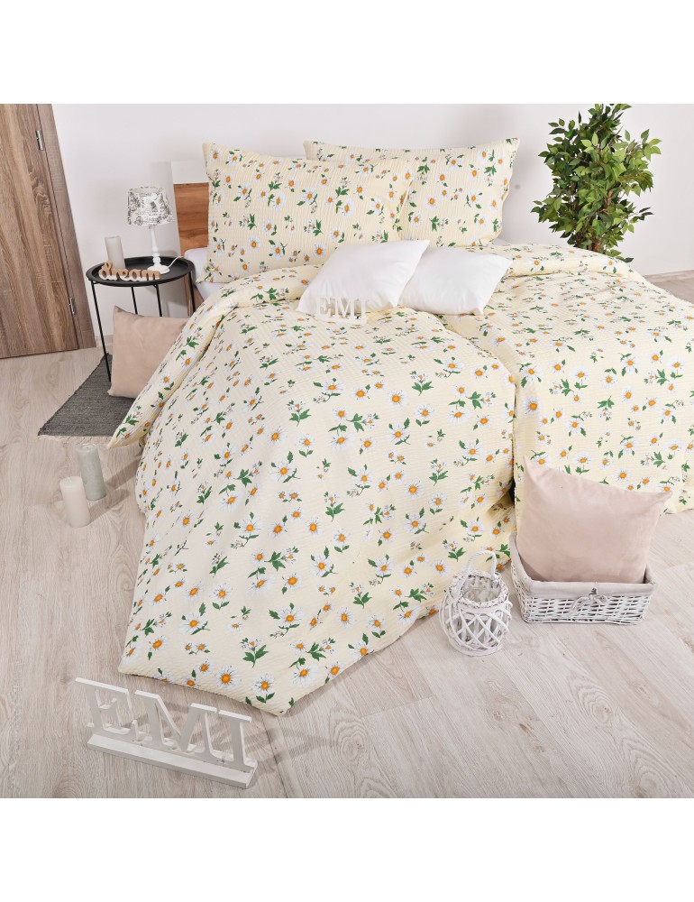 Krepové obliečky Slavia s motívom margarétiek sú zhotovené z luxusnej nakrepovanej 100% bavlny. Tieto obliečky získavajú na popularite vďaka svojim jedinečným vlastnostiam a výhodám. Ich hlavnou prednosťou je nežehlivý materiál s krepovým efektom, ktorý zvyšuje ich trvácnosť. Vyrobené sú na Slovensku.