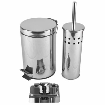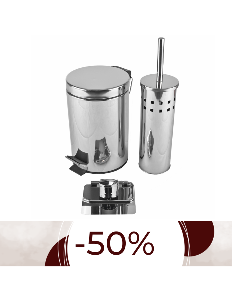 Moderné kúpeľňové doplnky, ktoré ozvláštnia každú kúpeľňu. Set Nero je vyrobený z nerezu. Obsahuje jeden držiak na toaletný papier, odpadkový kôš a WC kefu so stojanom.