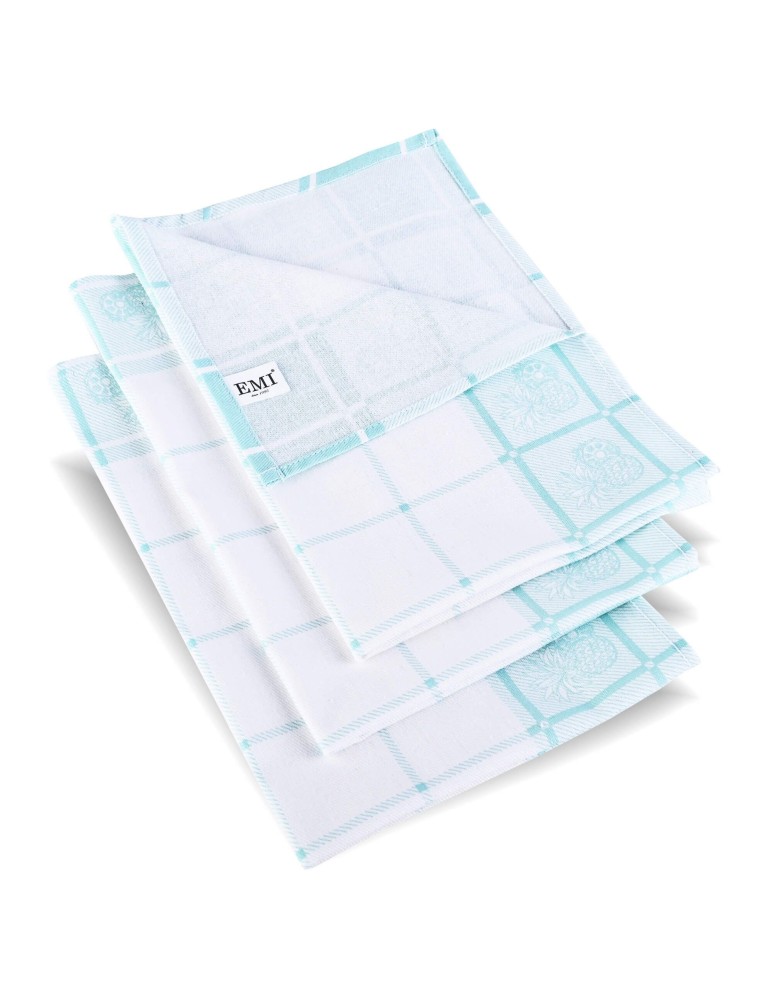 Set troch károvaných utierok na riad je vyrobený zo 100% bavlny. Utierky majú po obvode motív ananásu. Sú stálofarebné, savé a ľahko sa žehlia.