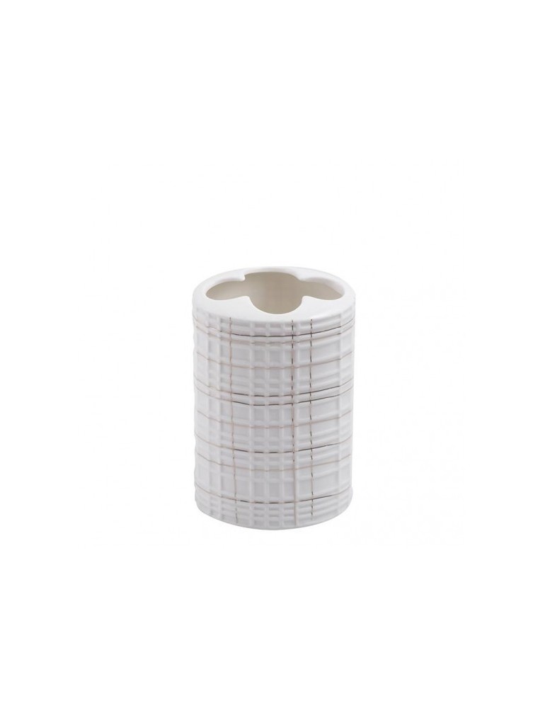 Pohár v bielej farbe so zlatými detailami krásne oživí vašu kúpeľnu. Kvalitné vyhotovenie zaručí dlhú životnosť.