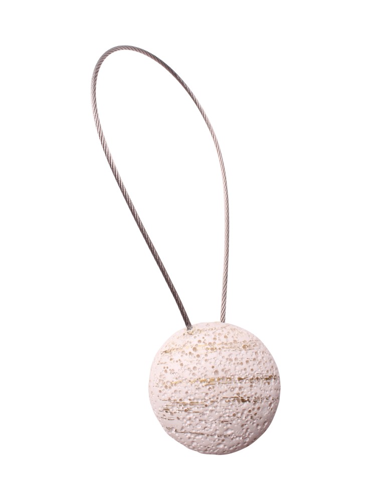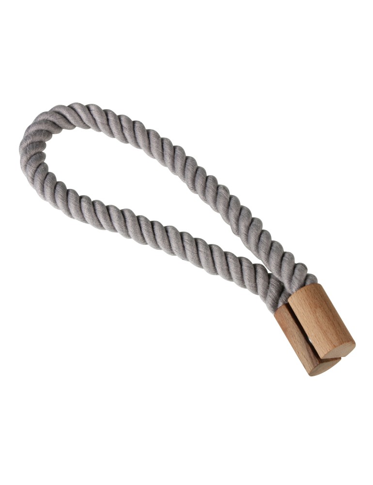 Magnetická spona v sivej farbe sa využíva na upevnenie závesov. Na oboch stranách sa nachádzajú magnety, pomocou ktorých sa uchytí záves. Spona je vyrobená z bavlny a dreva.
